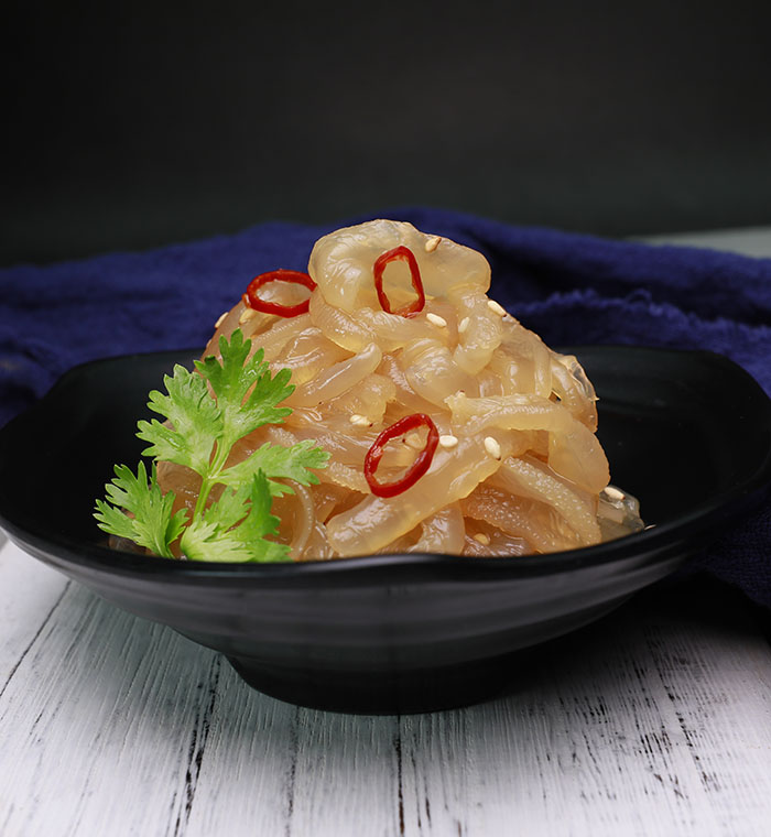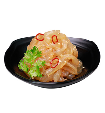 產(chǎn)品特點:精選優(yōu)質(zhì)海蜇,色澤清麗、晶瑩剔透,Q彈有嚼勁、清香酸甜好味道